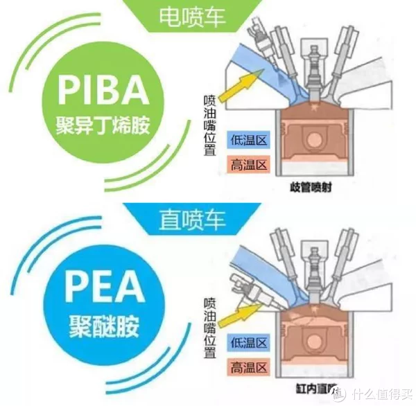 目前汽车绝大多数都是电喷(歧管喷射)和直喷车型,而燃油宝中的功能成分则主要是聚异丁烯胺PIBA(三代)和聚醚胺PEA(四/五代),PIBA适用于电喷式车型,对直喷车型不友好,但PIBA自身热稳定高不易分解的特性可能存在自身沉积的缺点,影响除积碳功效。