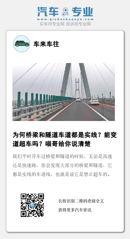 虽然桥梁和隧道,它是实线,它不能够超车,不能够变道,但是你要注意一点。