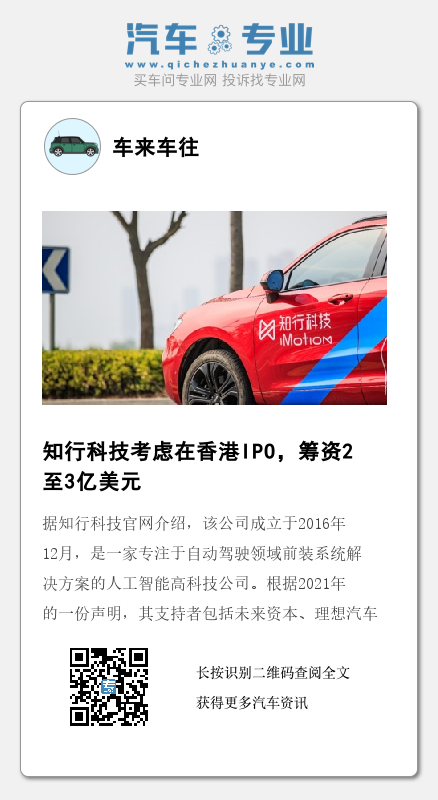 据外媒报道,知情人士透露,位于中国苏州的人工智能自动驾驶解决方案开发商和提供商知行科技(iMotion Automotive Technology Suzhou Co.)正考虑在香港进行首次公开募股(IPO),可能融资2亿至3亿美元。