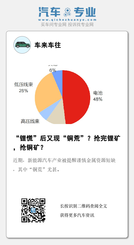上述分析绝非危言耸听,要知道,电动汽车消耗的铜是传统内燃机的三到四倍。