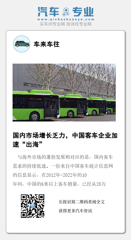 与海外市场的蓬勃发展相对应的是,国内客车需求的持续低迷。一份来自中国客车统计信息网的信息显示,在2012年-2022年的10年间,中国的6米以上客车销量,已经从20万辆跌至不足10万辆。
