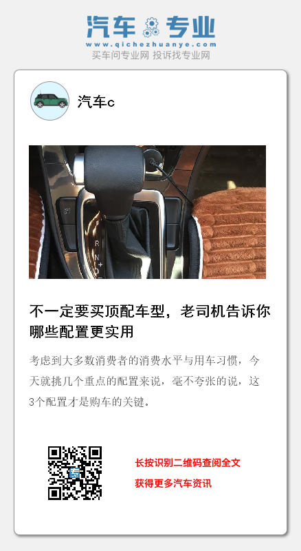 很多消费者在买车的时候都愿意选择顶配车型,不是因为他们不差钱,而是他们总觉得顶配汽车的配置非常全面,这些配置更有用。事实上真的如此吗?别看顶配车型上的配置全面多样,但是日常生活中能用得到的并不多。所以,买车并不一定要买顶配车型,今天老司机就告诉你哪些配置更实用。考虑到大多数消费者的消费水平与用车习惯,今天就挑几个重点的配置来说,毫不夸张的说,这3个配置才是购车的关键。