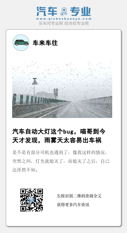 你不要一味地迷信自动大灯,自动大灯是个好东西,但是自动大灯有BUG,尤其还是非常致命的一个BUG。