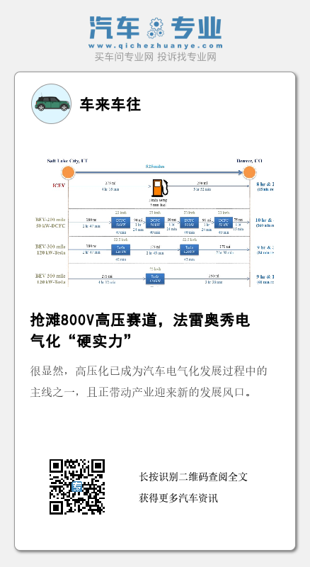 据美国能源部此前一项试验来看,相同里程下,采用超大功率快充技术的电动汽车整体体验无限接近燃油车。