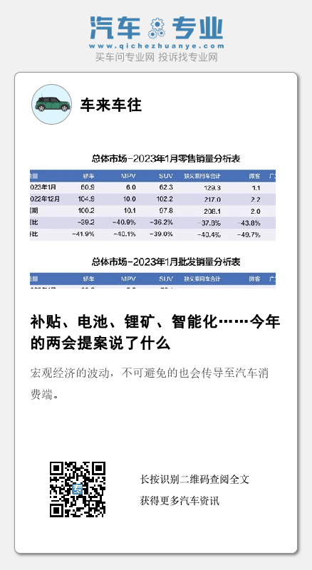2023年第一季度还没过去,车圈巨变已叫人应接不暇,在迷雾中踟蹰的汽车人急需一个风向标。两会在即,汽车行业相关议题在某种程度上预示了行业未来的走向,刚好能扮演风向标的角色。