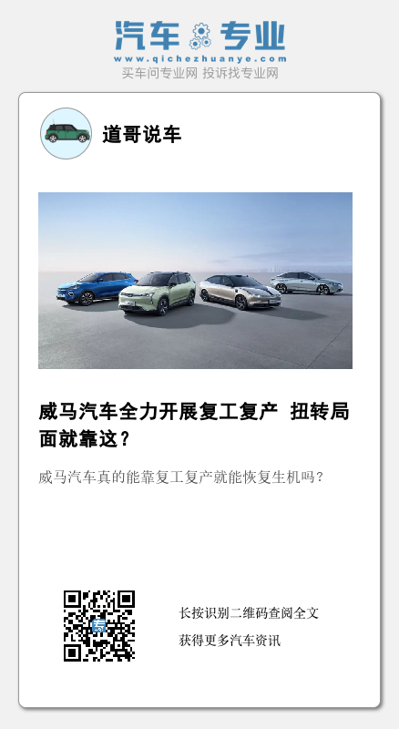 复工复产以及经销商恢复常态服务是好消息没错,但真的能够让威马汽车重新焕发生机吗?