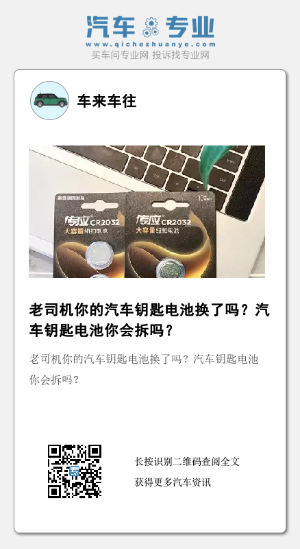 汽车越来越普及,但是似乎很多人都还不知道怎么换汽车钥匙电池,这看似简单的问题却要花大价钱去外面换电池。而且在更换电池也不知道电池能否支撑更长的时间,所以电池品质的好坏对于我们使用和长期使用很重要,否则出现钥匙没电,开不开门就十分尴尬。