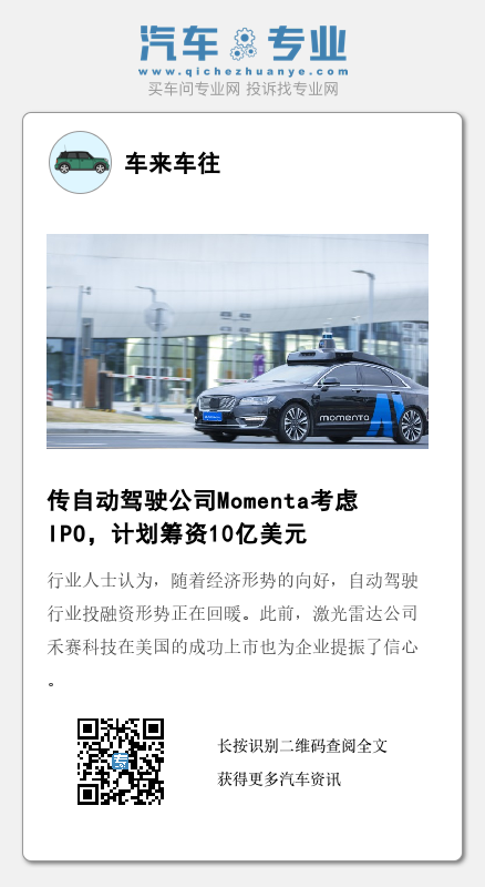 据悉,当前Momenta正在与财务顾问就可能的交易进行磋商,该公司也是今年国内自动驾驶公司第一个被爆出冲刺IPO的玩家。对于该消息,盖世汽车咨询了Momenta相关人员,对方却表示“并不知情”。