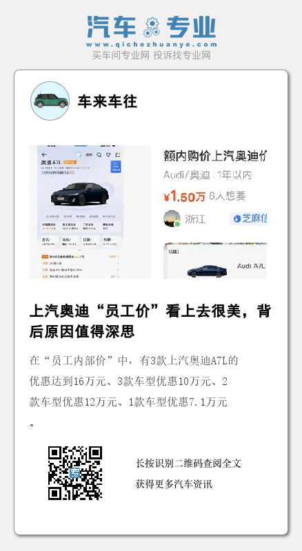 以上汽奥迪A7L为例,普通消费者通过上汽奥迪直营店购车的优惠幅度为2万-3万元,且全国优惠力度相同。而在“员工内部价”中,有3款上汽奥迪A7L的优惠达到16万元、3款车型优惠10万元、2款车型优惠12万元、1款车型优惠7.1万元。