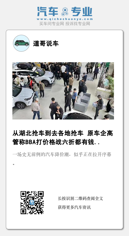 业内人士对《道哥说车》编辑表示,库存有限,清完就完了,踩踏式降价,也是反映了主机厂的无奈,有些企业,不降价也要被淘汰,此次降价被严重影响的车企,迟早要出局的。当然,在这场激烈竞争中能够幸存下来的企业,未来会很有竞争力。