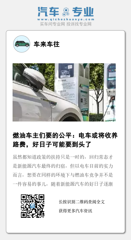同时随着其他地区新能源汽车保有量的上升,可以预见的是,未来电车征收养路费已经是板上钉钉的事儿。