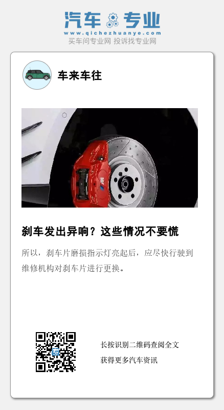 如果是新车或刚换刹车片,那么出现这种情况很可能是因为刹车片和刹车盘还没得到充分的磨合,所以有时会发出一些轻微的摩擦声。只要车辆再开上一段时间,异响就会消失。