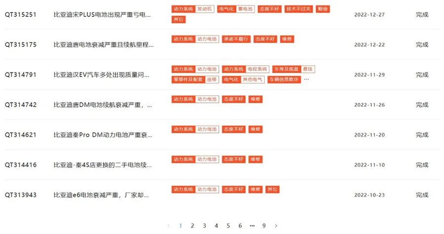 2022年,比亚迪完成对松下的超越,与LG新能源打成平手。以“比亚迪、动力系统、电池”为搜索条件,共在汽车投诉网中查到85条投诉信息(只显示2021年之后的投诉)。