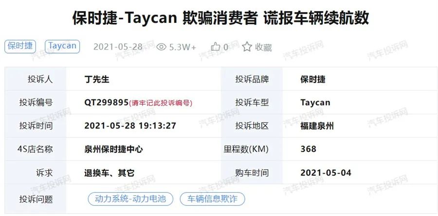 以搭载LG动力电池的保时捷为例,90万起步的保时捷-Taycan依旧被车主投诉续航里数被夸大。