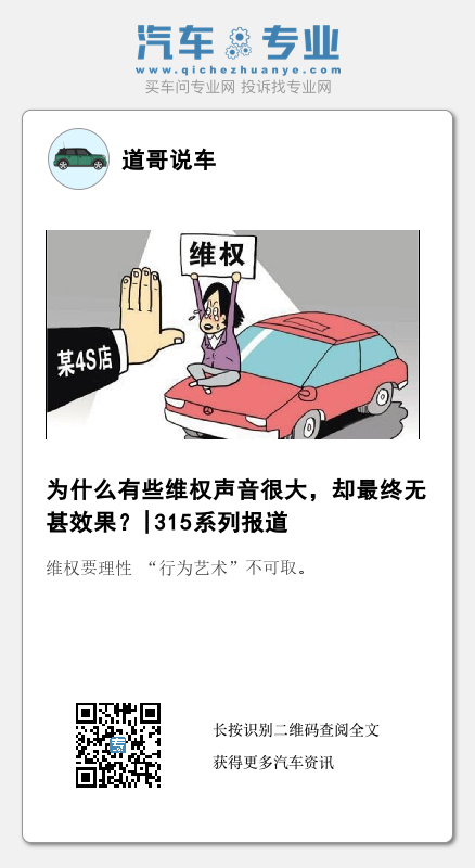 那么为什么有些声音很大的维权事件,反而最终无甚效果?临近“315”,打算为爱车出口恶气的消费者或许需要注意一些问题了,以免维权不成,反倒把自己搭进去了……