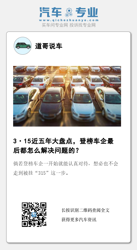 尽管“东窗事发”后这些车企都给出了迅速且诚恳的回应,但倘若他们一开始就能认真对待车主的困扰,想必也不会走到被挂“315”这一步。