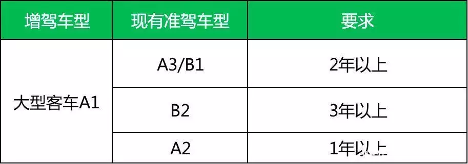 (四)申请增加大型客车准驾车型的,已取得驾驶城市公交车、中型客车准驾车型资格二年以上、已取得驾驶大型货车准驾车型资格三年以上,或者取得驾驶重型牵引挂车准驾车型资格一年以上,并在申请前最近连续三个记分周期内没有记满12分记录。