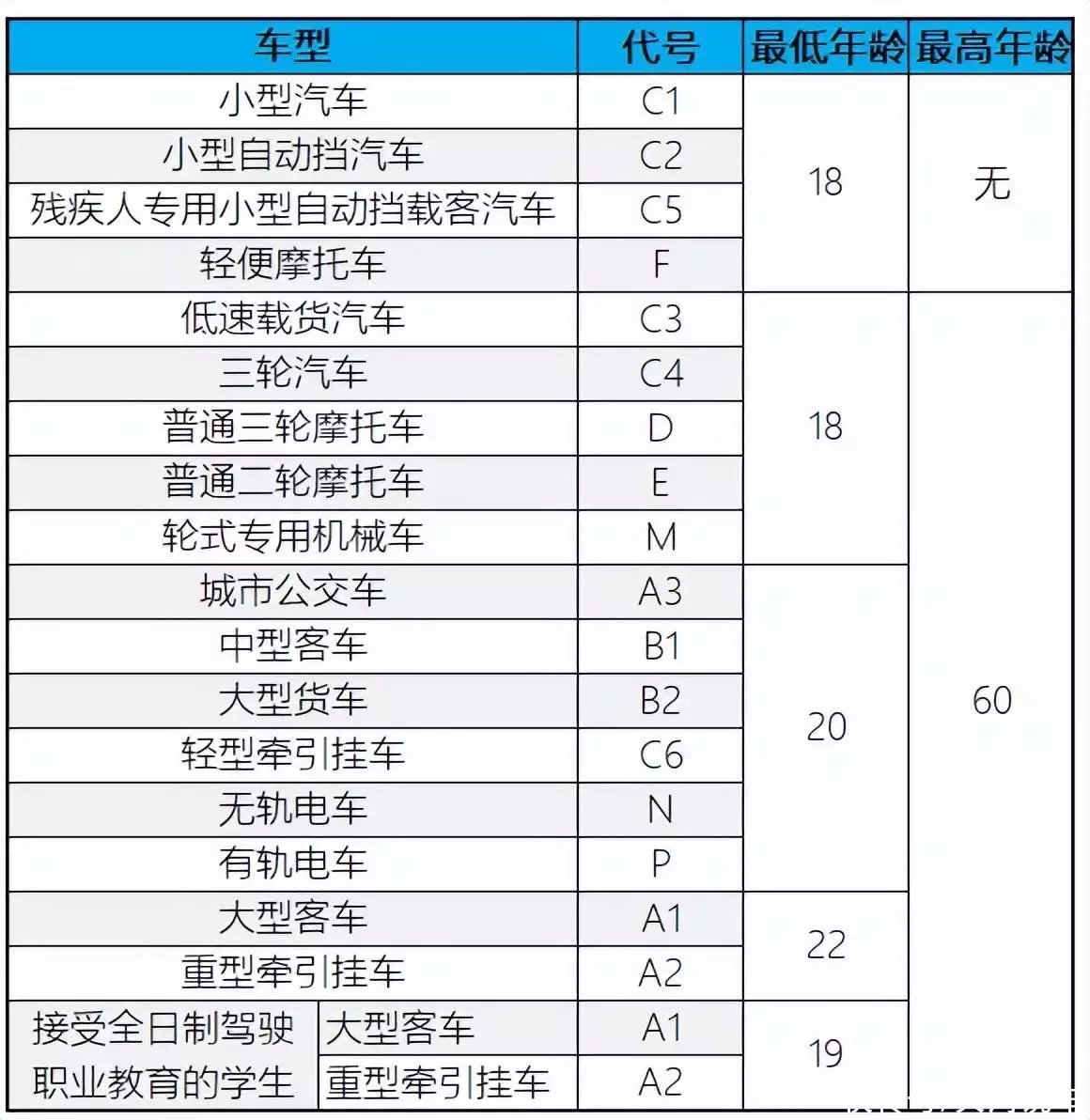5. 接受全日制驾驶职业教育的学生,申请大型客车、重型牵引挂车准驾车型的,在19周岁以上,60周岁以下。