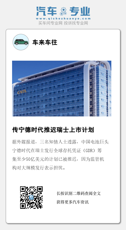 据外媒报道,三名知情人士透露,中国电池巨头宁德时代在瑞士发行全球存托凭证(GDR)筹集至少50亿美元的计划已被推迟,因为监管机构对大规模发行表示担忧。