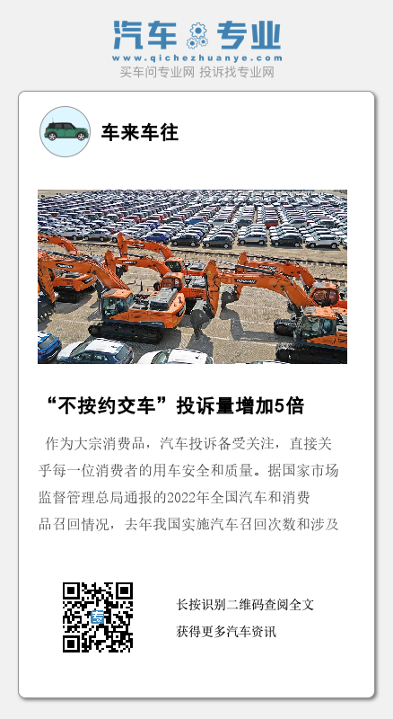 此外,随着国内新能源车销量持续攀升,以及去年供应链问题的影响,厂家对于新车产能规划未能及时调整,导致延迟交付问题频发,“不按约交车”的相关投诉量较2021年增加了5倍。