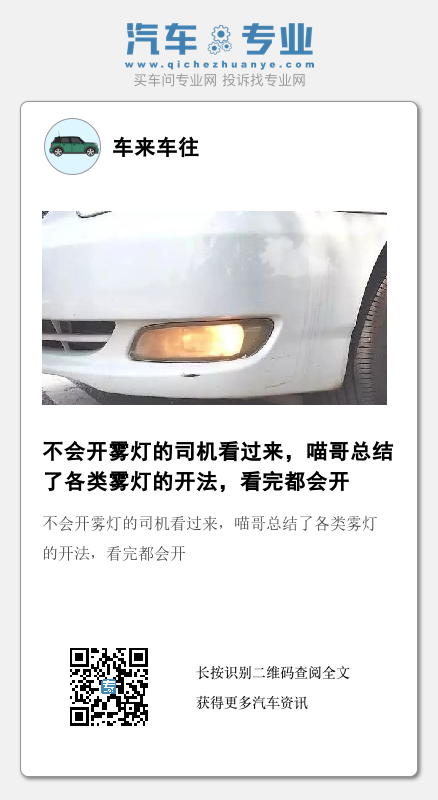 由于雾灯特别亮,所以,最后喵哥还提醒大家一点,如果平时能见度比较好的情况下,大家一定不要贸然开雾灯。
