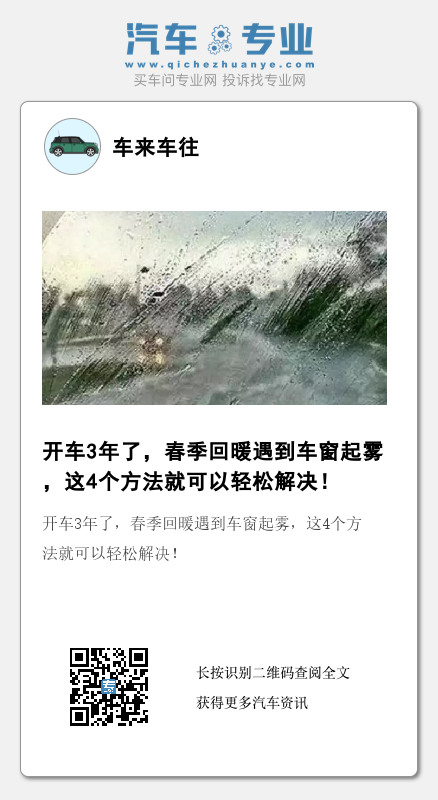 春季玻璃起雾是非常普遍的,在感觉到轻微起雾的时候可以使用空调循环来解决这个问题,但是不管最后是通过什么方式,都要注意在路上的行驶安全,安全永远放在第一位。遇到突发情况,也不要着急,沉着冷静的去应对,希望本篇文章可以给各位司机朋友带来帮助!