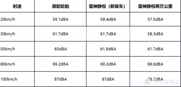 经过两万公里的使用之后的数据对比可以看出: 5个速度段环境噪音数据均比当时新胎刚装车所测的要好,这个结论与不少车友的认知相悖。 一部分人认为,新轮胎上脚的感受是最好的,但用一阵之后就适应了,也就不觉得轮胎好了。 还有人认为,轮胎的性能是一定会衰减的,所以静音性是越来越差的。 而这组数据能够说明两个问题: 一是,当初我测试的新装车轮胎,其实没有“开胎”,新轮胎需要有200km以上的测试,才能把橡胶外部不容易观察到的保护层给磨去,在这个过程之后,轮胎的性能才能得到充分的发挥。 二是,静音棉轮胎的静音性能衰减,是可以少到忽略不计的。不论是对比原配轮胎还是对比新装时候的雷神轮胎,两万公里之后的雷神轮胎,都能得出这个结论。 反映到实际体感,特别是2022年末对疫情的放开,我自己阳康之后就很容易疲劳,特别是对噪音更敏感,但现在每次出差开长途回来,精神上被路噪攻击的感觉其实还越来越少,这和采集的数据一致。
