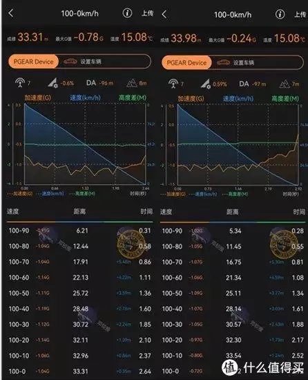 实际数据再次刷新了我的认知,最好的一次100-0干地全力制动距离直接干到32.31米!后面几次也稳定在33米开外。要知道,我开的只是一台1.2T的雷凌,这是一台典型的买菜车。