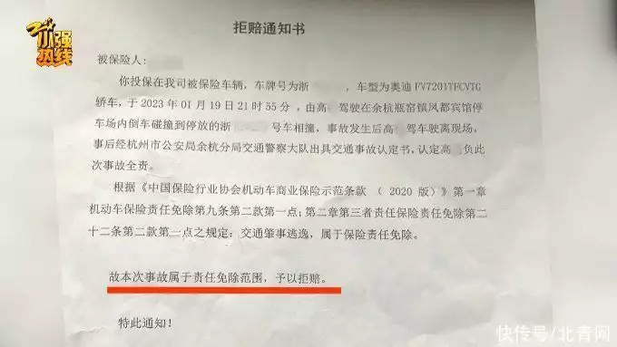 对此,保险公司理赔部负责人朱先生表示,交警出具的责任认定书只能作为保险公司理赔的参考,真正的事故经过要保险公司去调查清楚:“如果不认同拒赔,可以通过法律维权,由法院来裁定。”