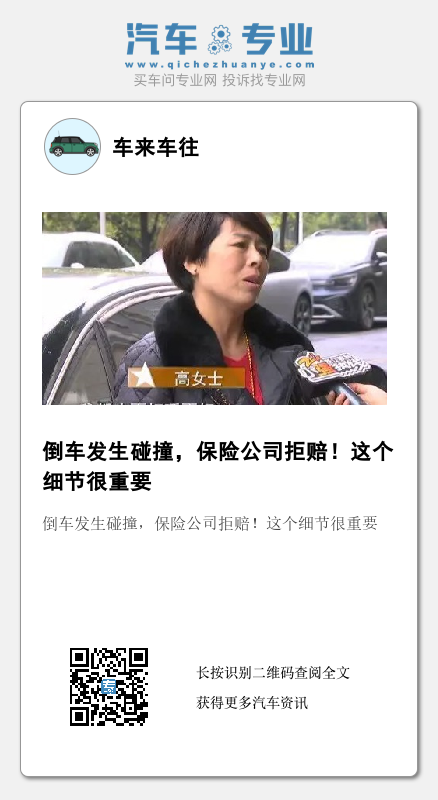 随后,记者陪同高女士来到了她车辆投保的天安财产保险公司。保险公司理赔部负责人朱先生表示,对于高女士的这起事故,他们只能赔付交强险部分,大概是2000多元,商业险的部分是不予理赔的:“我们根据视频来看,高女士当时倒车的时候撞了这个车,中间停顿了很久,再往前开,车窗摇下来往后看这个过程,证明她是知道这个事故发生而驾车离开。”