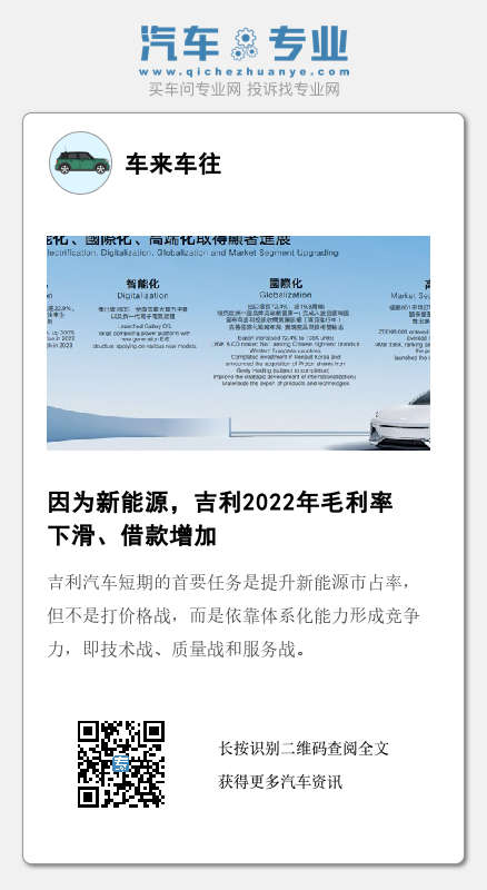 因为新能源业务成本过高,吉利汽车去年毛利率下降了3个百分点至14.1%。吉利汽车集团高级副总裁、CFO戴庆在业绩发布会上表示,上半年有大量的新能源订单,但又遇上电池价格猛增,影响了集团成本。其中,有部分订单是因2021年底供应紧缺而延迟至2022年初交付,吉利汽车自己承担了电池上涨的那部分费用。