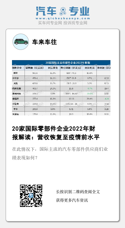 正如麦格纳首席执行官斯瓦埃米•卡特吉利所说:“2022年的汽车行业,步履维艰:通胀攀升至几十年来的最高水平,地缘政治问题导致欧洲能源价格前所未有地飙升,汽车制造商的生产计划仍不稳定。”在此情况下,国际主流的汽车零部件供应商们业绩表现如何?