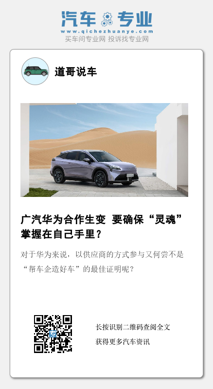 另据报道,广汽集团一名高层也曾表示:“我们为什么高端化一定要靠华为?不要以为跟华为合作了就可以高端化,华为给不了品牌全部东西。可以跟它合作,但是不会去依赖它,得依赖自己。我们以陈学文博士(广汽研究院首席专业总师)为核心,打造了上千号人的团队,就聚焦一件事情——做自动驾驶。”