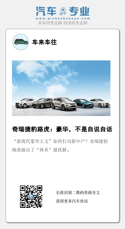 应对巨量的新中产消费群体的需求爆发,扎根中国市场已经十年有余的奇瑞捷豹路虎,用一套体系化的综合拳,为广大新中产阶层提供了关于豪华产品与服务的最优选。