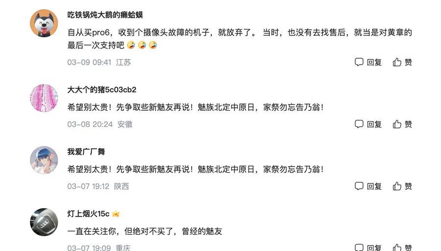 一位曾经的魅族用户发帖表示:“自从买pro6,收到个摄像头故障的机子,就放弃了。当时,也没有去找售后,就当是对黄章的最后一次支持吧”。