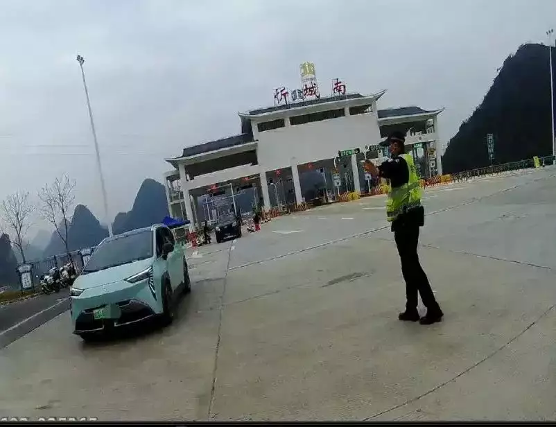 3月1日10时许,来宾市公安局交通警察支队高速公路管理二大队在S30线贺西高速忻城南收费站执勤时,从收费站驶出的一辆浅绿色新能源汽车引起了民警的注意,随即示意其靠边停车接受检查。