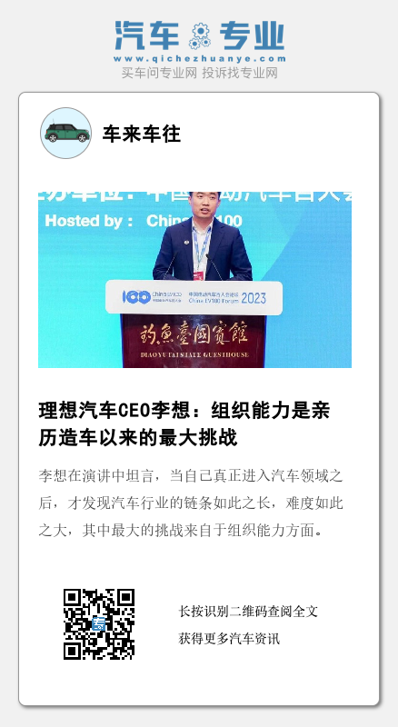 面对新的挑战,李想指出,唯一的解决方法就是学习世界范围内的最佳实践,比如IBM、华为这样的优秀企业。不过,他们所提供的方法和组织能力是否适用于汽车领域无从验证。