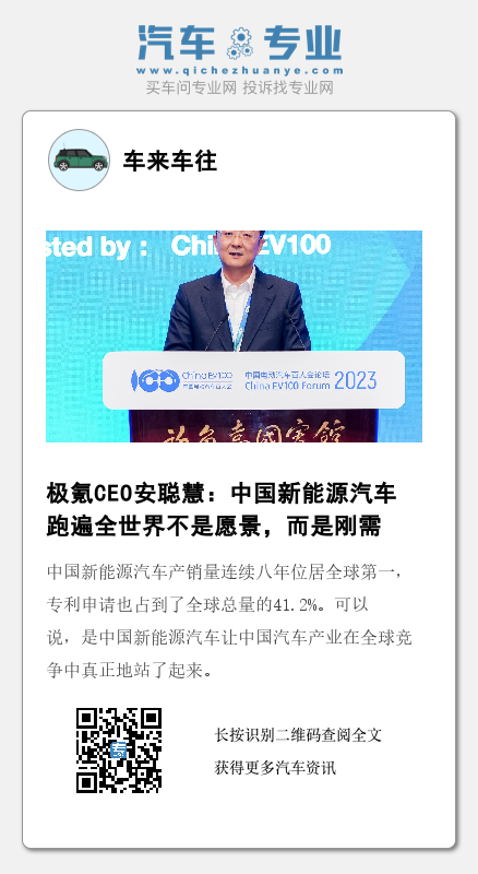 4月1日,吉利控股集团总裁、极氪智能科技CEO安聪慧在中国电动汽车百人会论坛演讲时表示,在全球汽车新能源浪潮中,中国汽车已经在全球范围内取得了规模化、体系化、代际化的换道先发优势。中国新能源汽车产销量连续八年位居全球第一,专利申请也占到了全球总量的41.2%。可以说,是中国新能源汽车让中国汽车产业在全球竞争中真正地站了起来。