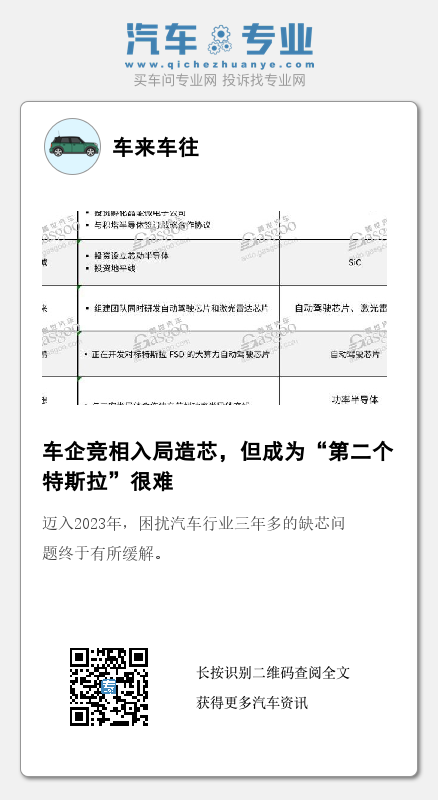 尽管面对种种挑战,车企造芯的大幕已然拉开,行业也在期待下一个特斯拉,或下一个比亚迪的诞生。