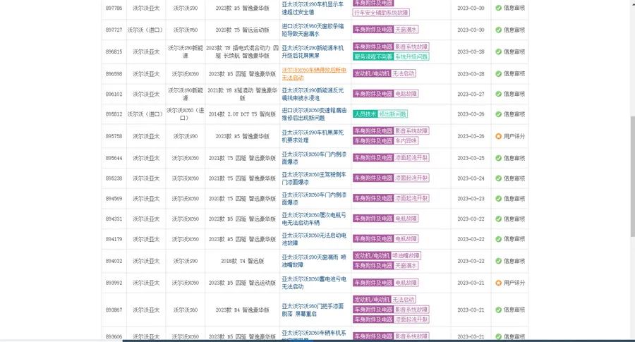 不过,比起这些,沃尔沃旗下车型车门爆漆的问题,或许更令人感到恐慌。早在去年12月,《道哥说车》就曾报道过沃尔沃旗下车型车门爆漆的问题,但从车质网中关于沃尔沃车型的投诉案例来看,沃尔沃车门爆漆的投诉自始至终就没有间断过。