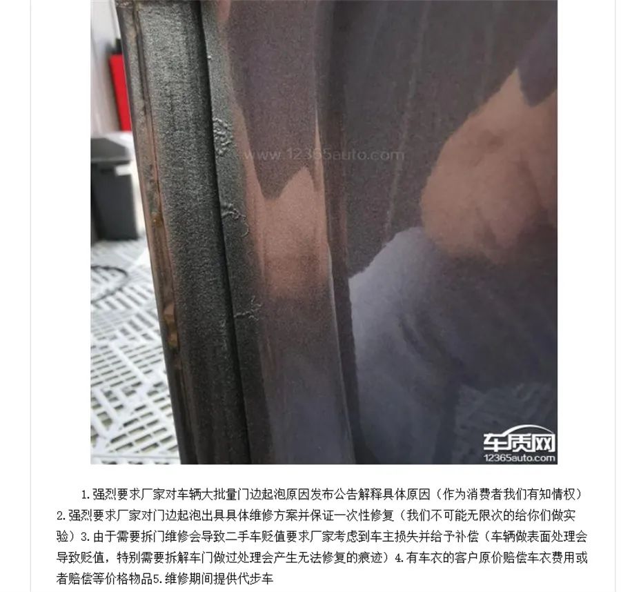 值得一提的是,从最近反馈的投诉来看,越来越多的车主并不仅仅反映问题,而是夹杂了让沃尔沃给出说法的意愿,一位2021款沃尔沃XC60智远豪华版车主便在投诉中提出,强烈要求厂家对车辆大批量门边起泡原因发布公告解释具体原因,强烈要求厂家对门边起泡出具具体维修方案并保证一次性修复……