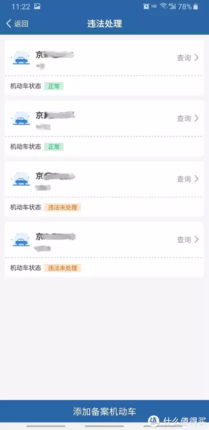 2. 如果你已经备案了车辆和驾驶证,你已有的违章就会在APP上展现出来了。然后,你点击“更多”,点击“违法处理”,你绑定的机动车违章就在下面可以看到了,如下图所示。