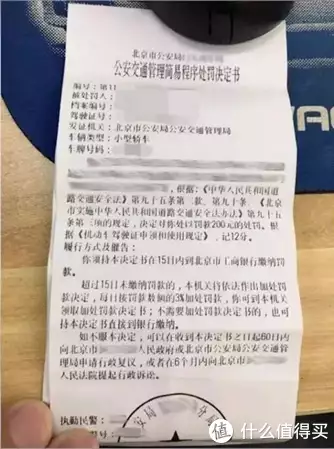 我们首先来聊一下交通违章的类型,一般分为现场违章和非现场违章。现场违章就是被交警当场抓了个“现行”并开具了违章处理单。值得一提的是,交通违法者自领到交通违法凭证15日内必须到有关部门接受处理或罚款,逾期不接受处理的,从第16日起每日按罚金的3%收取滞纳金,滞纳金最多不能超过罚款数额。如下图所示就是现场开具的处罚决定书。