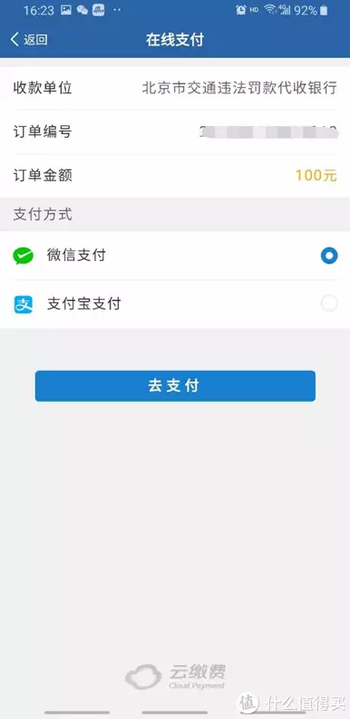 7. 选择你方便用的支付方式,支持微信和支付宝,如下图所示,至此你的一个违章就处理完了。