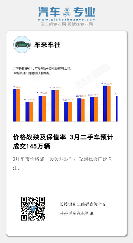具体来看,3月,中型轿车是二手市场中的优质产品;同时,小型SUV保值率环比微增。其余级别降价车型3月均面临“流动性危机”,车主卖车遇到困难;其中MPV价格降幅最大,小型轿车也因电动车冲击,表现相对弱势。