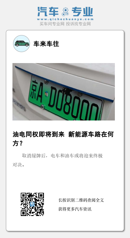 崔东树还明确表示,新能源汽车专用牌照具有较强的歧视性,扭曲了汽车行业的自然发展。如今,新能源汽车彻底在市场上站稳脚跟,在适用交通法规方面,已经没有异于传统汽车的理由。在大力补贴和相关政策的推动下,新能源车的核心竞争力已经形成,未来将完全取代燃油车。崔东树补充到:“在这样的优势下面,新能源车购置税减免政策应该取消,有利于车市健康发展。”除了购置税,“油电同权”还将意味着失去国补优势的新能源车将不再享有绿牌所带来的各种“特权”。那么问题来了,“油电同权”对新能源车究竟是利好还是利空?销量持续下滑的燃油车市场能否借机迎来反弹?本期《爱卡独角SHOW》我们来聊一聊。