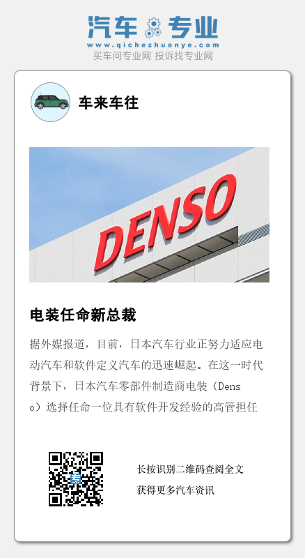 据外媒报道,目前,日本汽车行业正努力适应电动汽车和软件定义汽车的迅速崛起。在这一时代背景下,日本汽车零部件制造商电装(Denso)选择任命一位具有软件开发经验的高管担任公司新总裁。