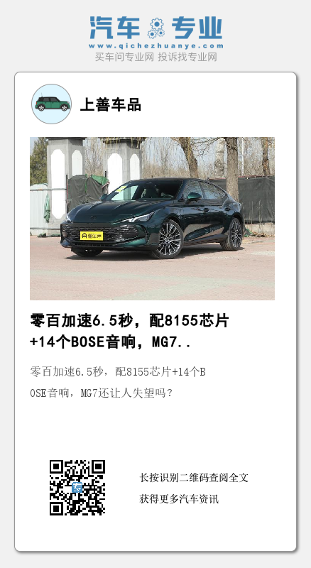 目前,MG 7(图片|配置|询价) 2023款已经正式推出,共计在售6款车型版本,提供出1.5T与2.0T两种排量版本的选择空间,起售价11.98万,销售路线相对亲民,对此,以MG 7 2023款 2.0T Trophy+ 激擎耀世版为例,作为顶配车型版本,具体表现是否会让消费者感到失望呢?我们继续往下看。