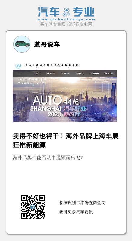 值得关注的是,“拥抱汽车新时代”是本届上海车展的主题,如果说海外品牌在国内汽车市场的第一轮电动化攻势效果不好,那么下一轮电动化攻势会不会出现转机呢?它们能否紧紧拥抱汽车新时代呢?