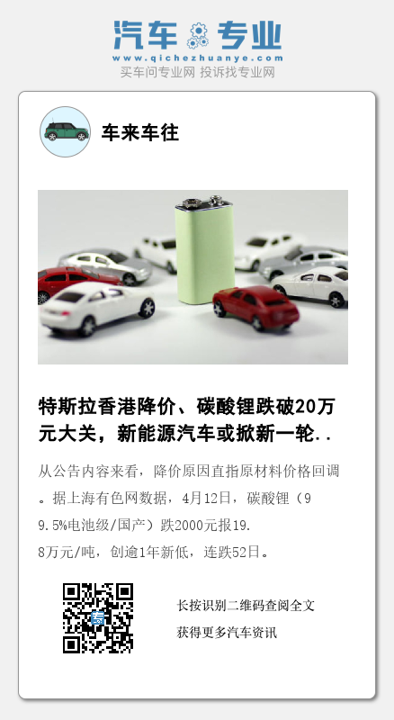 据特斯拉美国官网4月7日消息,特斯拉长续航版和高性能版Model 3(配置电池级碳酸锂跌破20万元/吨关口